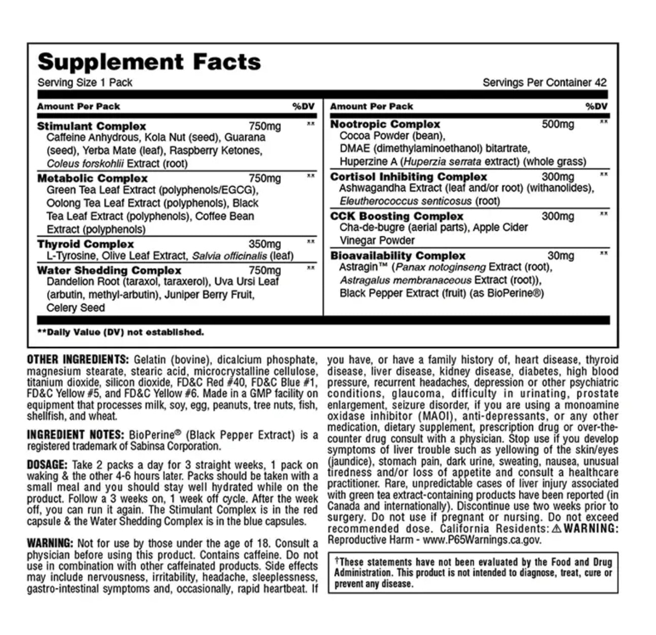 Animal Cuts® is an advanced and comprehensive, all-in-one thermogenic and metabolic support supplement. The new and improved formula features convenient pill packs with fewer pills, designed to boost metabolism, curb appetite, and support a healthy stress response. It’s the ultimate tool for those looking to get shredded and lean.