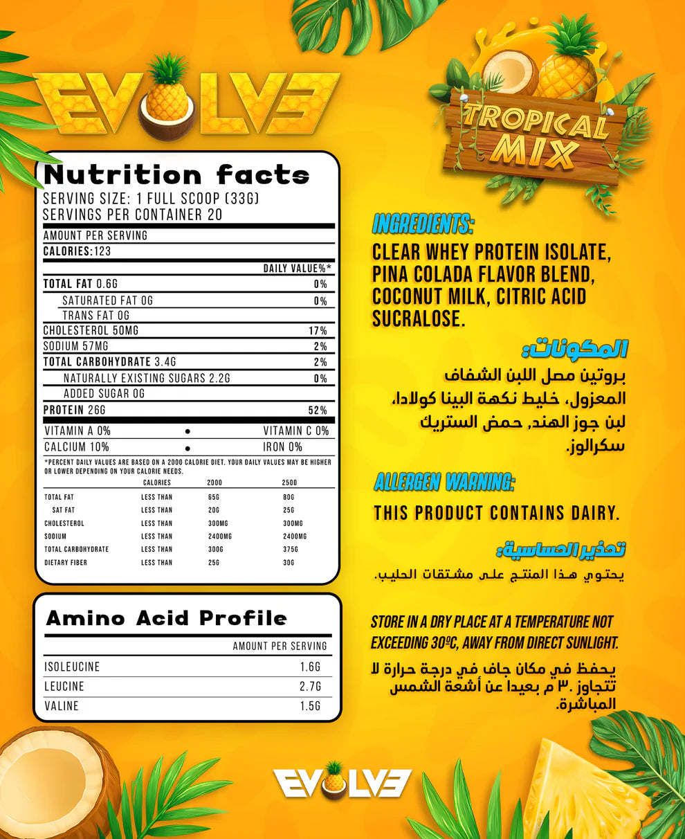 EVOLVE® CLEAR-WHEY ISOLATE - PINACOLADA - 20 Serve