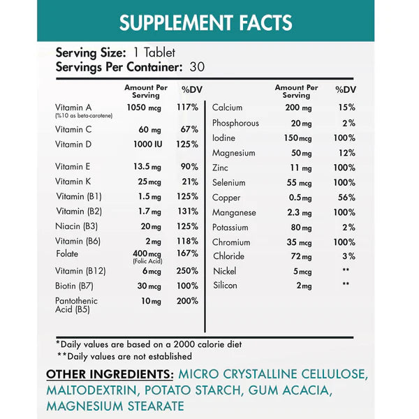 A combination of vitamins and minerals (A, D, E, K, C, B-COMPLEX, Magnesium, Zinc, Chromium)